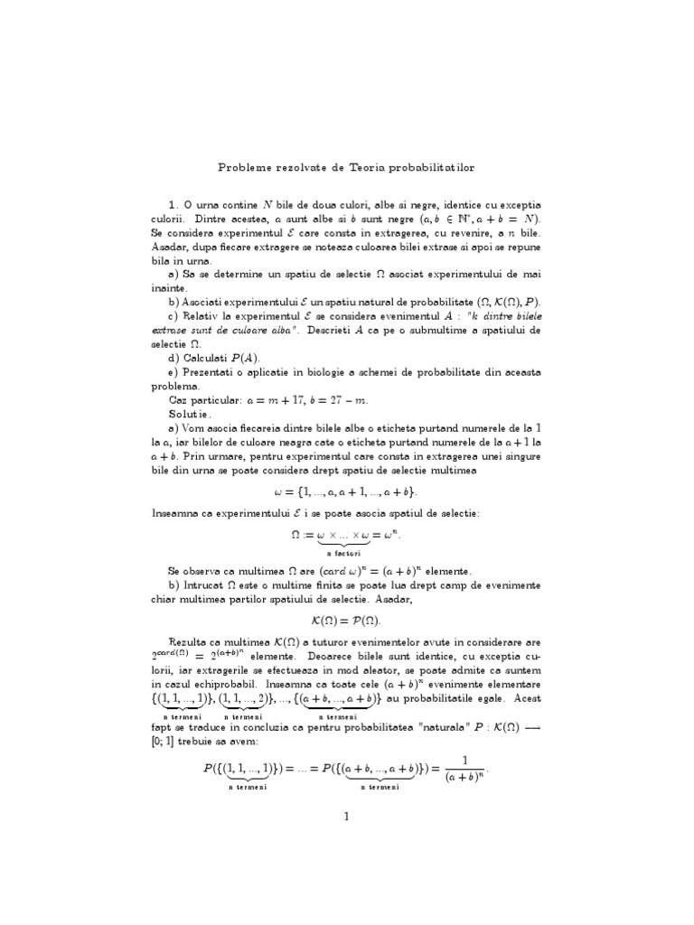 O urna contine n bile de doua culori, albe si negre, identice cu exceptia. Teoria probabilităţilor şi a informaţiei în sistemul de. Studiul acestora nu poate fi făcut pe cale deterministă și, de aceea, știința hazardului a apărut ca o necesitate.