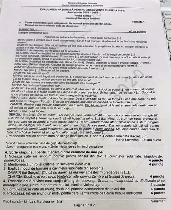 Maybe you would like to learn more about one of these? Subiecte evaluare nationala 2018 romana.